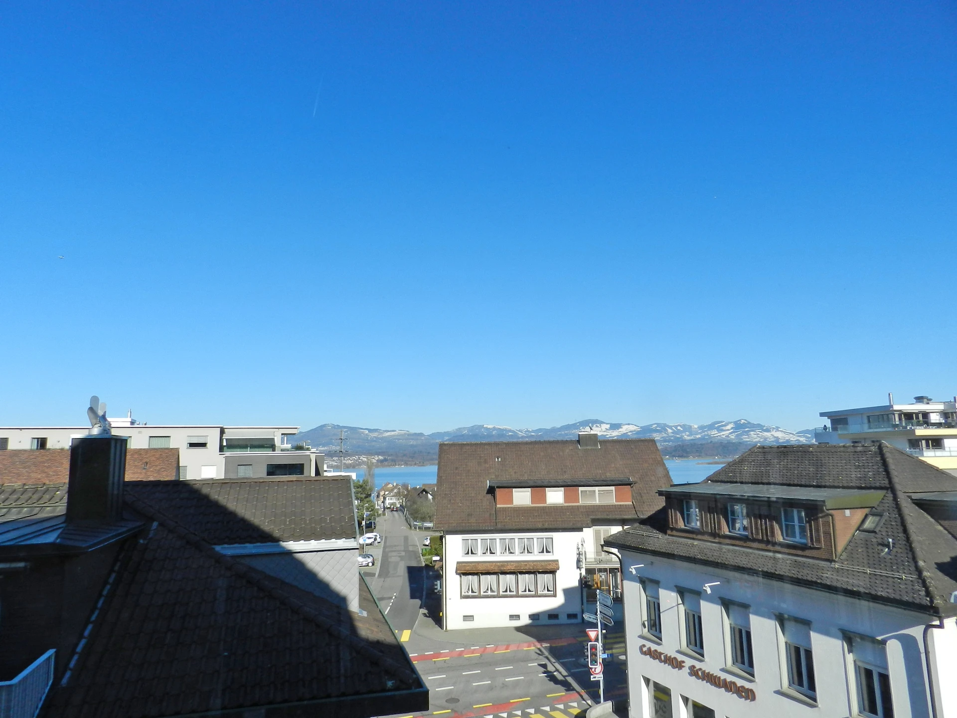 Via Entrée mit eingebauter Garderobe gelangen Sie in den offenen, lichtdurchfluteten Wohn- und Essbereich und die moderne Küche. Die Wohnung ist in einem sehr guten, neuwertigen Zustand. Von den beiden Balkonen mit Verglasung geniessen Sie die herrliche Aussicht über die Dächer von Altendorf bis auf den Zürichsee.