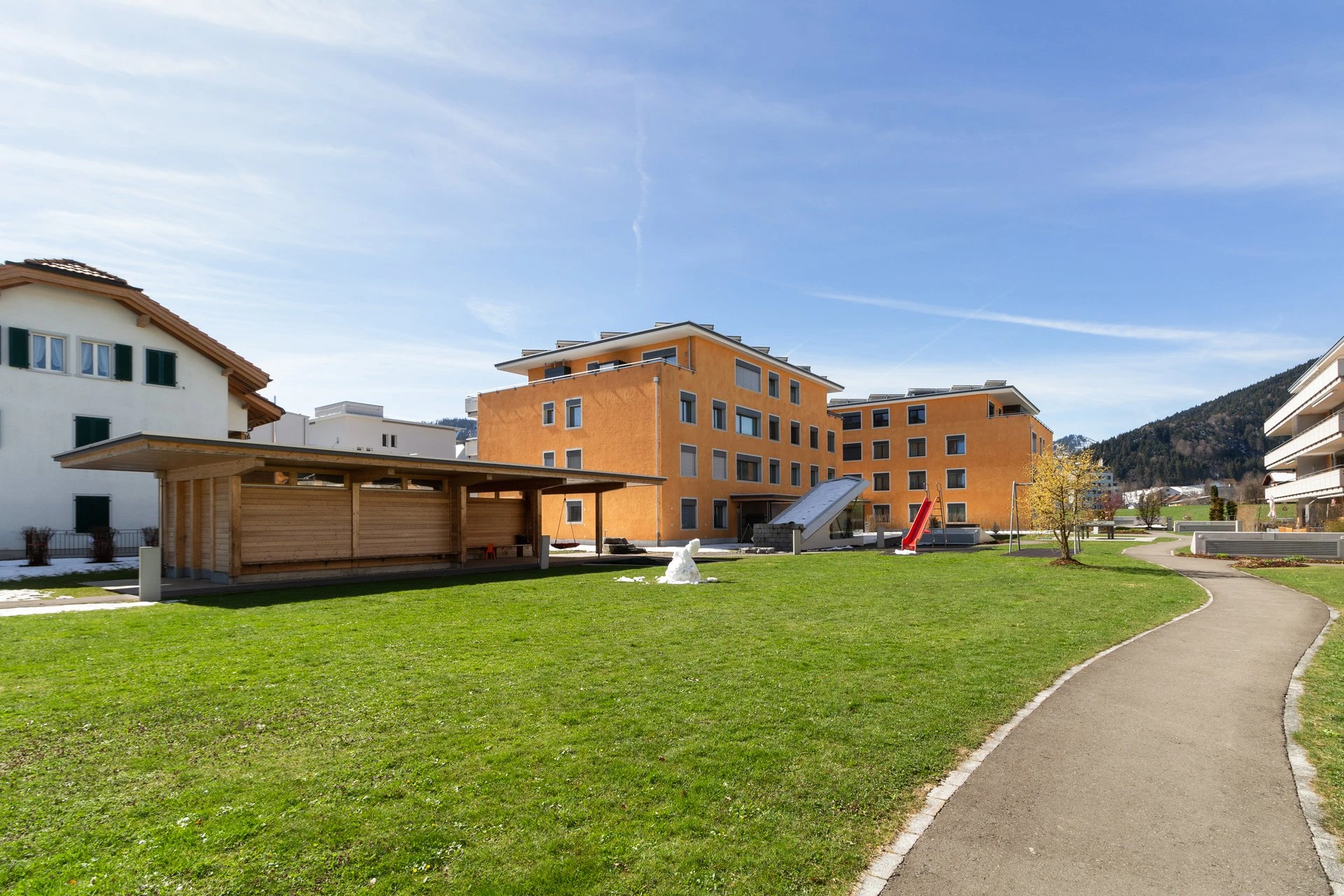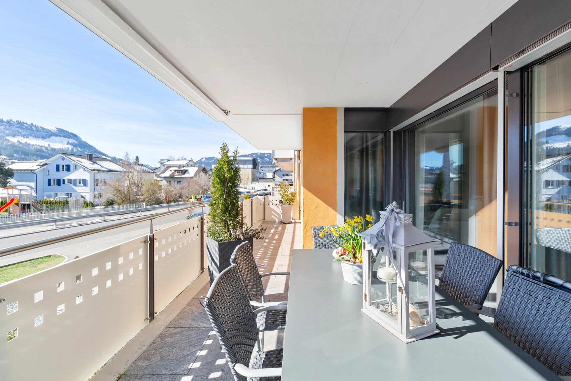 Dort wo die Sonne früh am Morgen scheint und bis in den Abend bleibt, liegt diese 5,5- Zimmer-Wohnung zum Verkauf. Während andere im Nebel sitzen, kann man hier meistens die Sonne geniessen. Die Liegenschaft befindet sich derart nahe zum Dorfkern, dass alle Geschäfte, Restaurants, Schulen und Institutionen zu Fuss gut erreichbar sind.