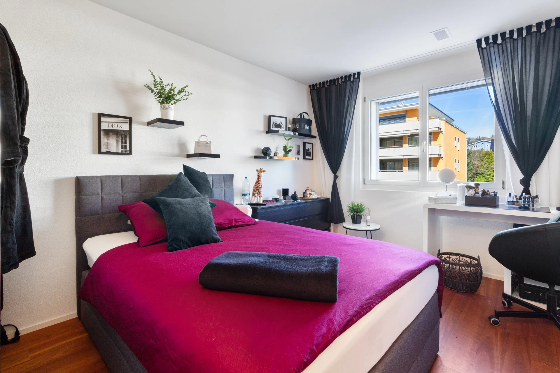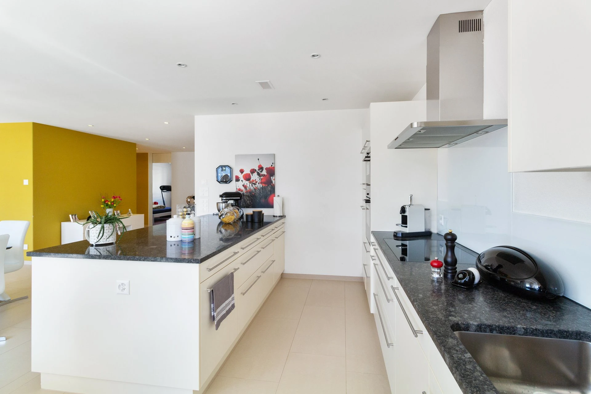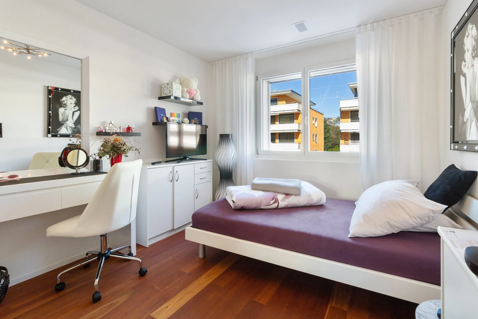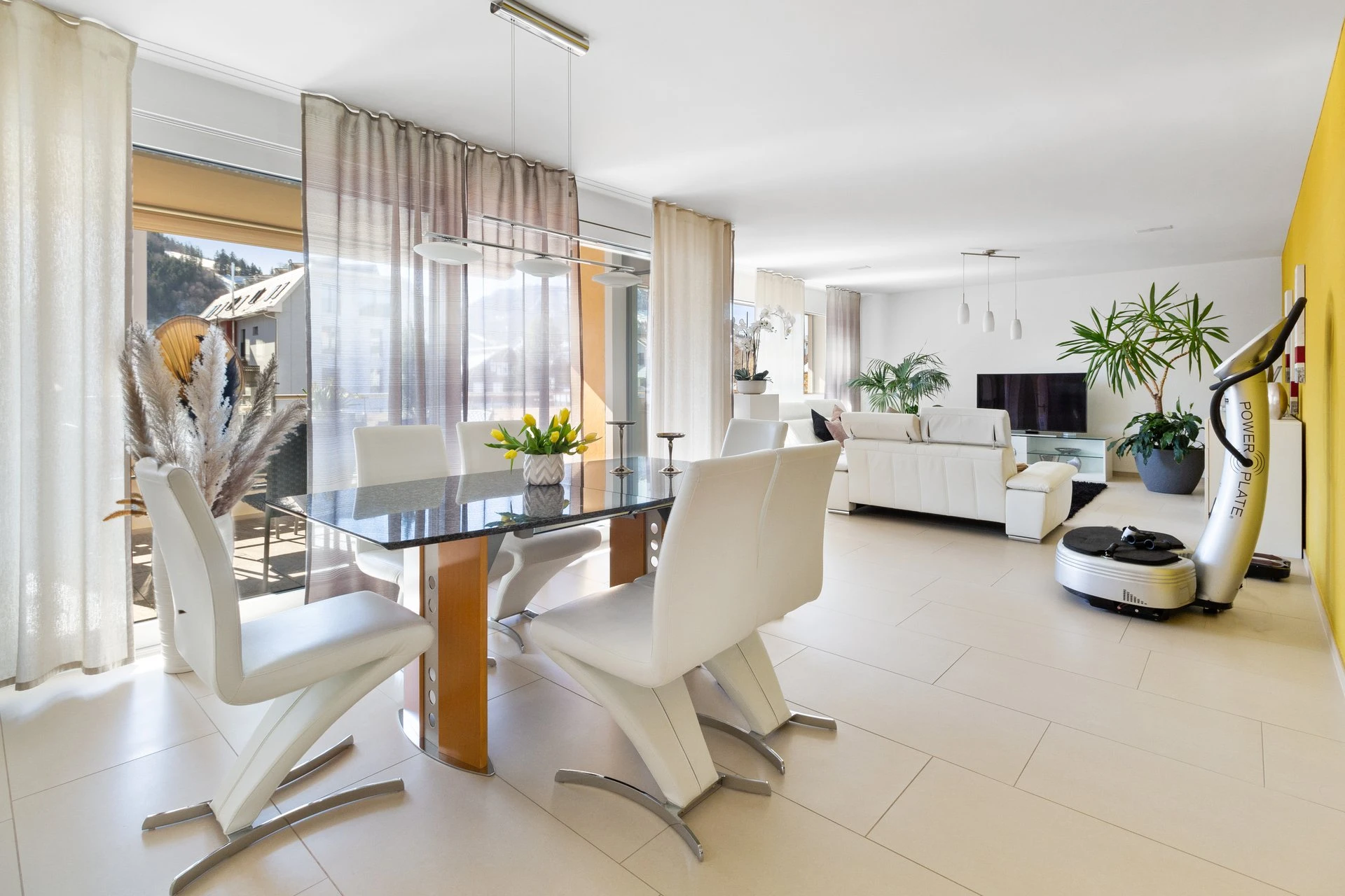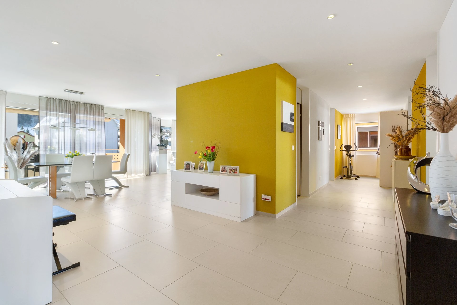 Via Entrée mit eingebauter Garderobe gelangen Sie durch den Gang in den Schlafbereich. Der lichtdurchflutete Wohnbereich mit offener Küche und Essbereich bietet den Wow-Effekt der Wohnung. Die praktische Küche bietet viel Platz und Freiraum fürs gemeinsame Kochen und Sie gelangen von dort zudem direkt auf den teils gedeckte Balkon, welcher zum Verweilen und die Aussicht geniessen einlädt.