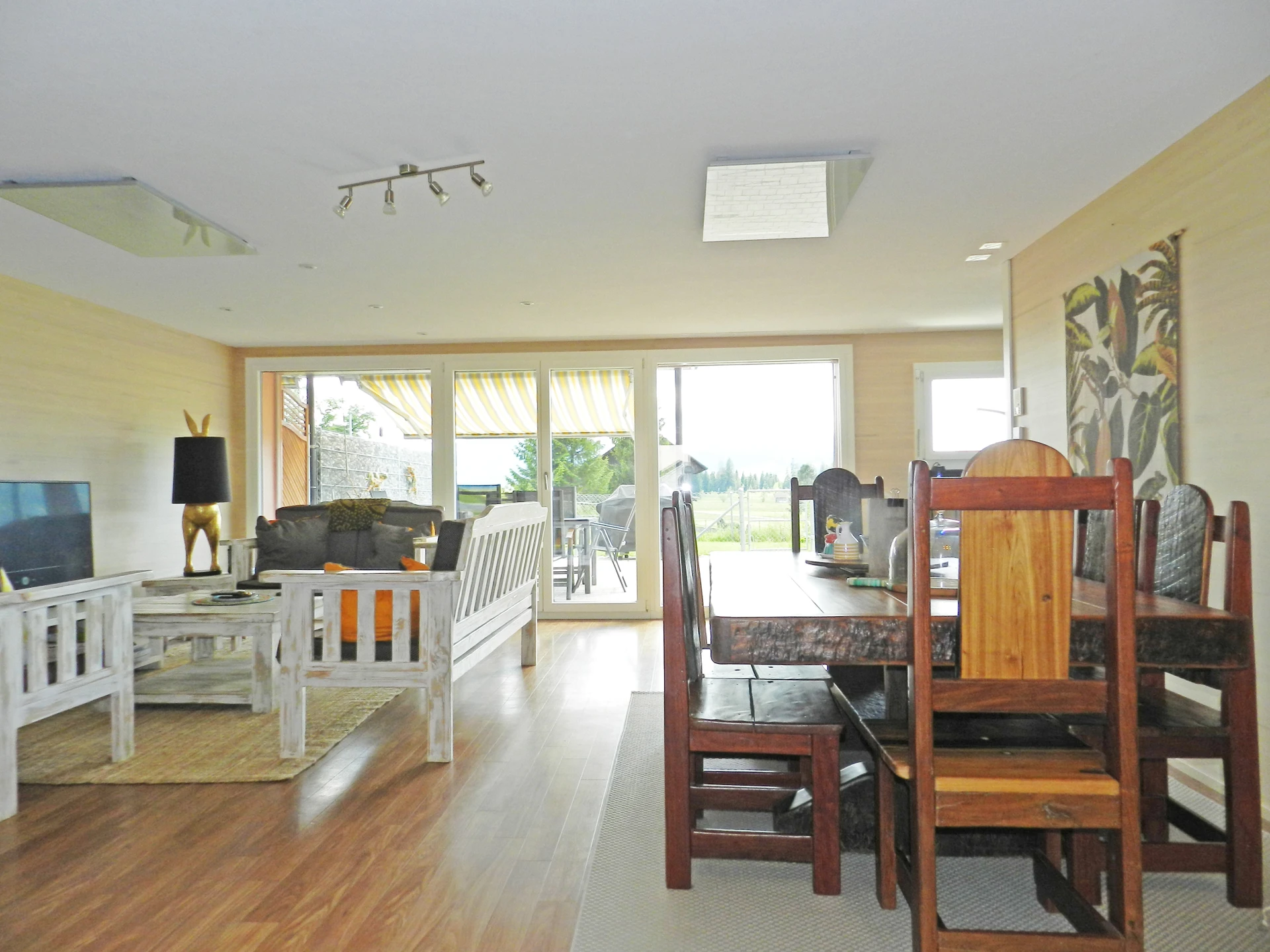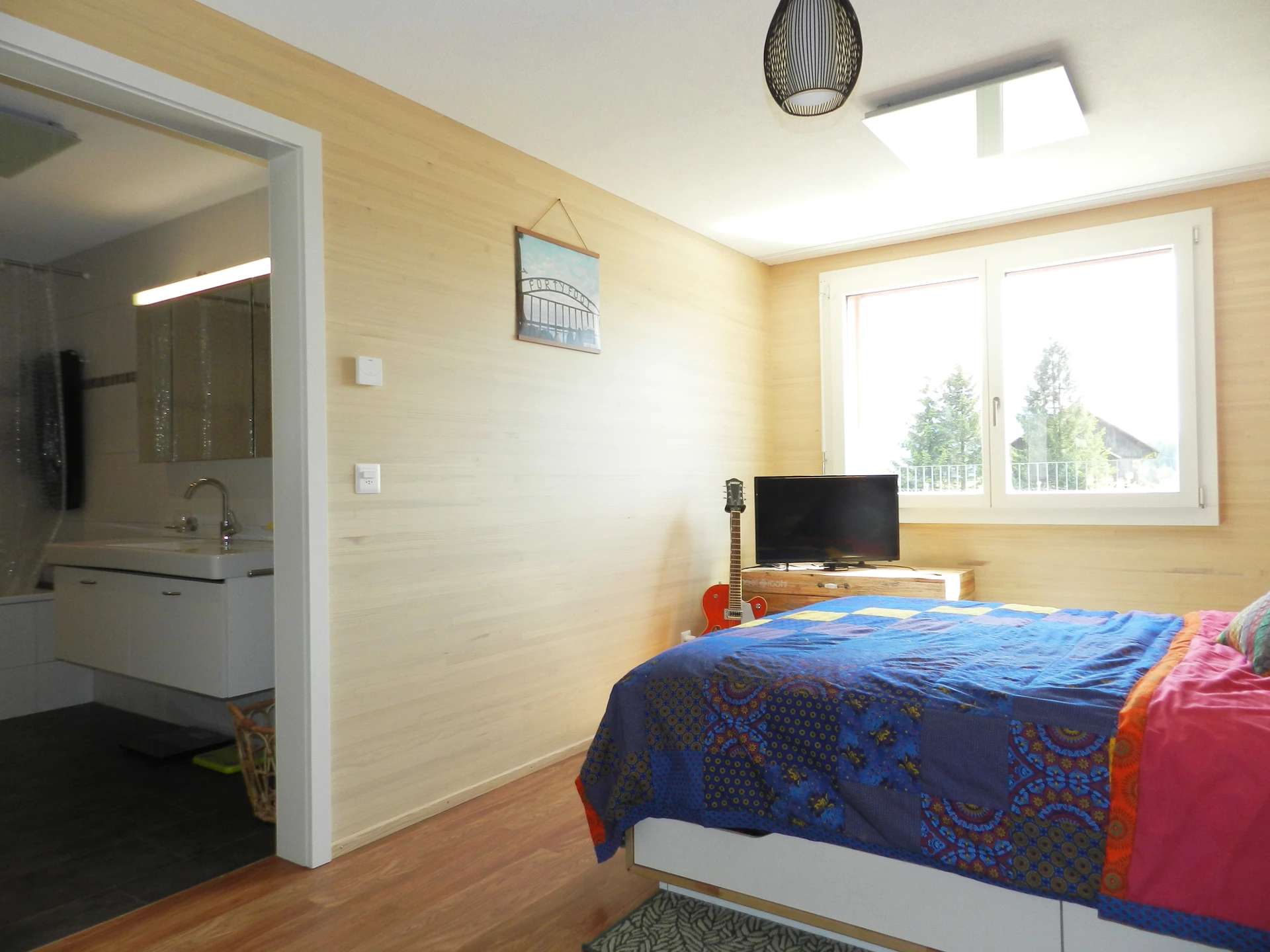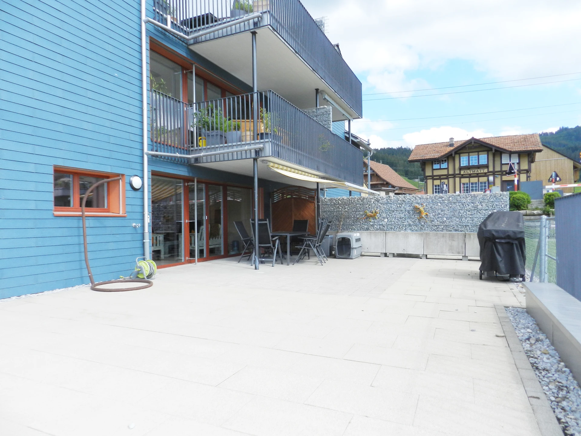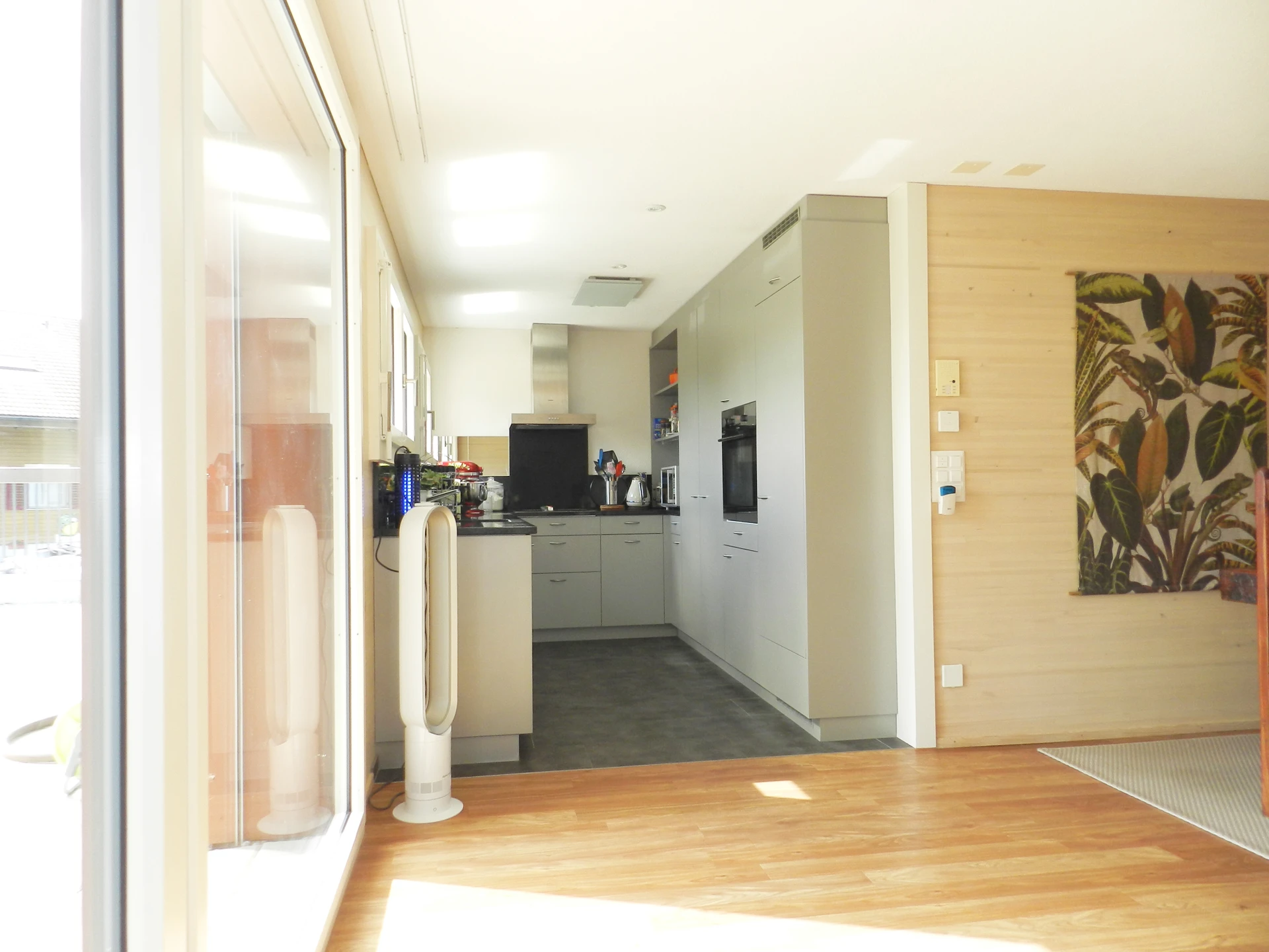 Diese Parterrewohnung überzeugt durch den grosszügigen Grundriss. Schon beim Betreten der Wohnung hinterlässt sie einen geschmackvollen Eindruck. Via Entrée mit eingebauter Garderobe gelangen Sie in den offenen, Wohn- und Essbereich. Durch die grosse Fensterfront ist sie lichtdurchflutet und hell, die praktische Küche bietet viel Platz und Freiraum beim Kochen. Vom Wohn-/Essbereich gelangen Sie auf den 81 m2 grossen Gartensitzplatz, auf welchen Sie schöne Sonnentage geniessen können, mit Weitsicht auf die Berge. Das ideale Domizil für Familien und Paare, welche gerne modern und auf dem Land wohnen möchten.