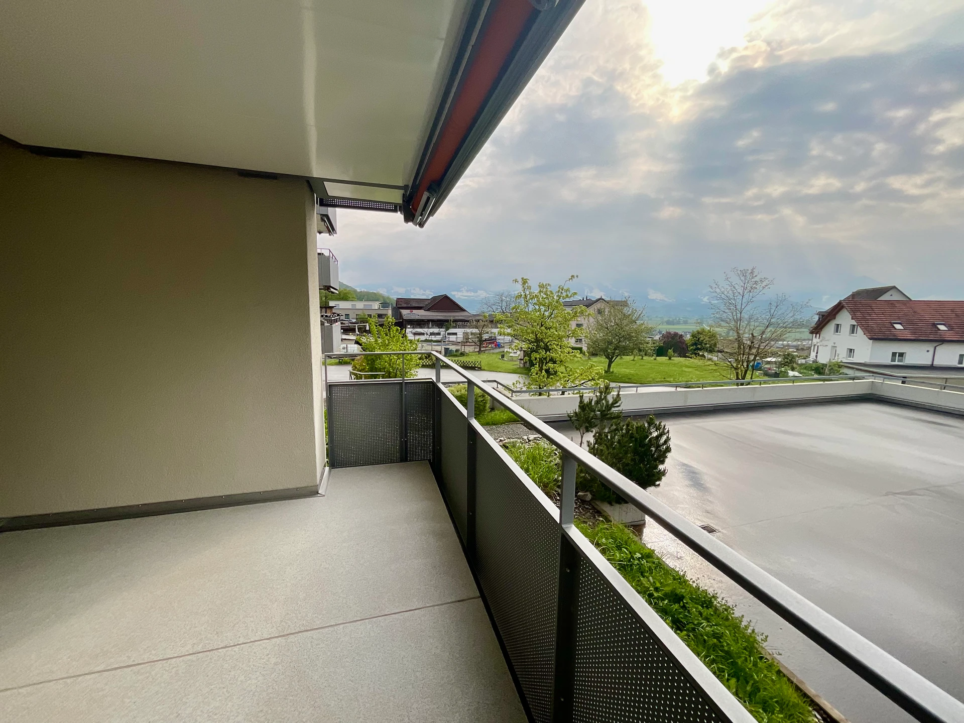 Diese 2.5-Zimmer-Wohnung oberhalb von Tuggen ist ideal für Singles oder Paare, die ein komfortables Zuhause suchen. Mit einer Wohnfläche von 72 Quadratmetern ist sie geräumig genug, um ein angenehmes Wohnen zu gewährleisten. Der Balkon mit einer Fläche von 10 Quadratmetern bietet einen schönen Blick auf die Glarner Alpen und ist perfekt, um im Sommer zu entspannen.